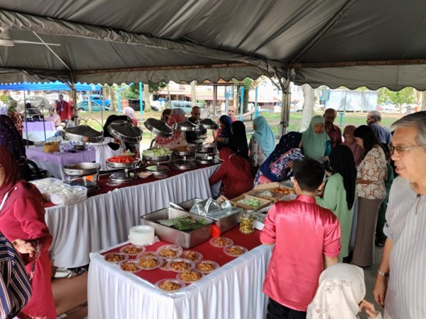 Pelbagai juadah tradisional seperti rendang, ketupat, lemang, sate, dan kuih-muih disajikan hasil sumbangan serta gotong-royong warga taman. Selain menjamu selera, acara turut diserikan dengan persembahan kebudayaan, ucapan penghargaan, dan sesi bergambar kenangan.